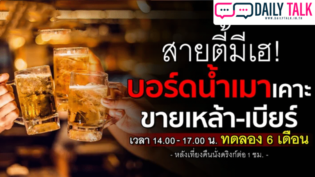 บอร์ดน้ำเมา เคาะขายเหล้าบ่าย 2 – 5 โมงเย็น เอาใจสายลาก นั่งต่อ 1 ชม. เที่ยงคืน แต่ขายเหล้าได้ไม่เกิน 24.00 น. คาดประกาศลงราชกิจจาฯ เดือนธ.ค. พร้อมทดลองใช้พลางก่อน 6 เดือน